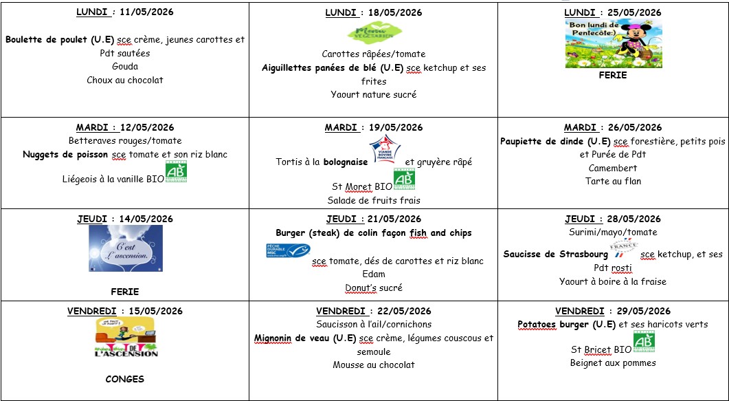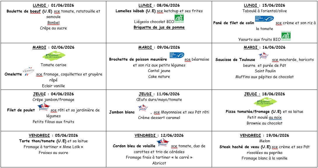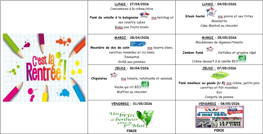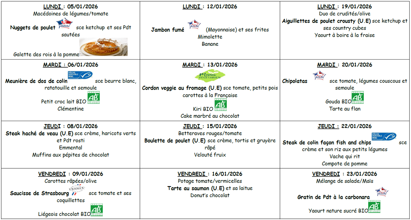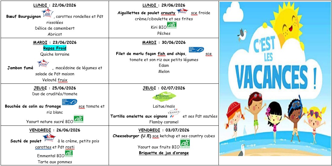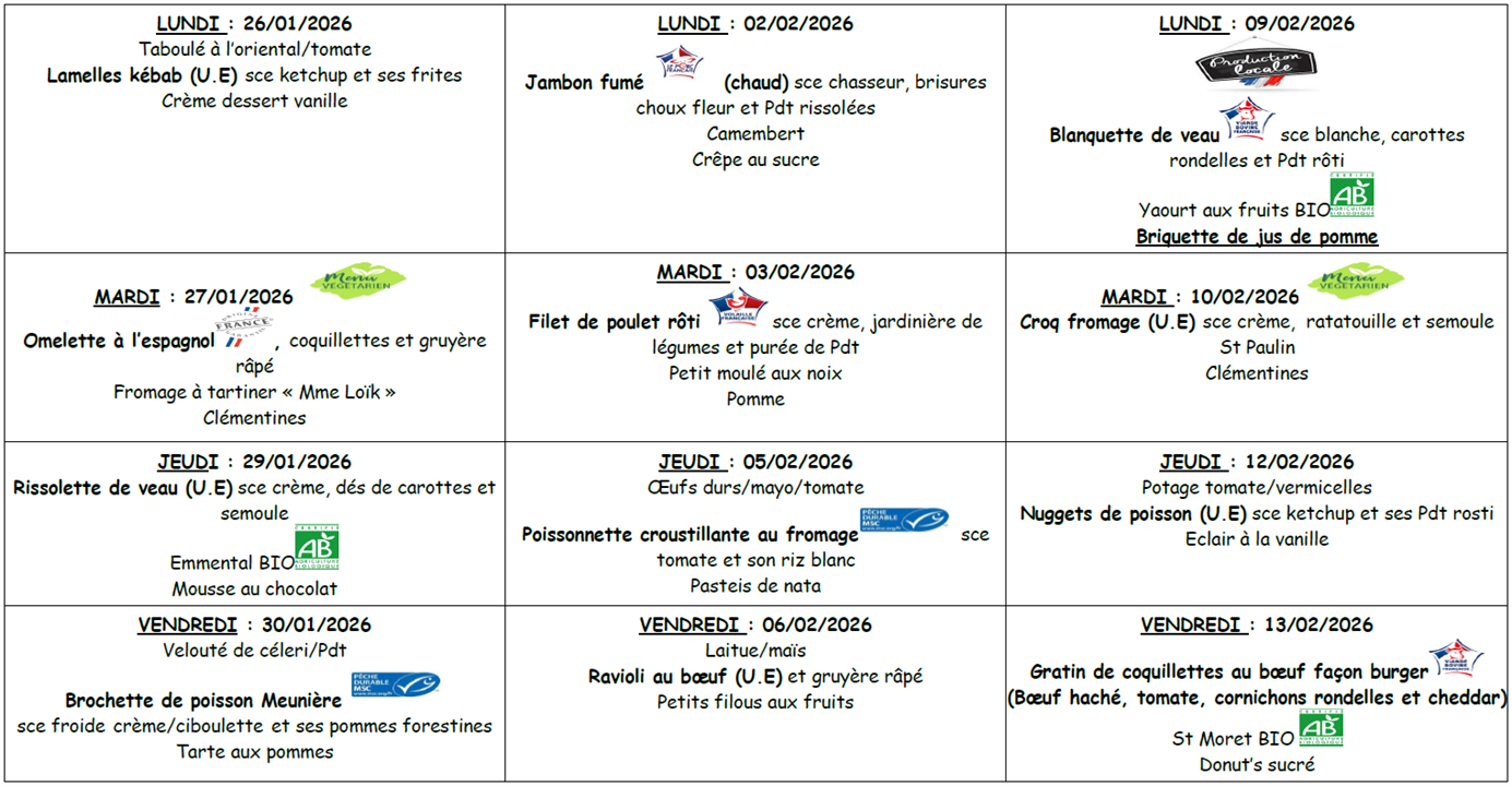 * Menus susceptibles de variations sous réserve des approvisionnements.