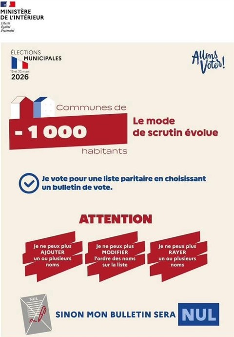 Comme vous le savez, les élections municipales auront lieu les 15 et 22 mars 2026.
