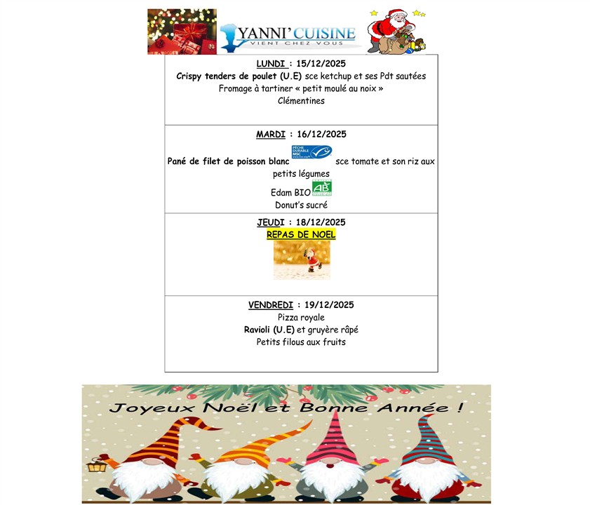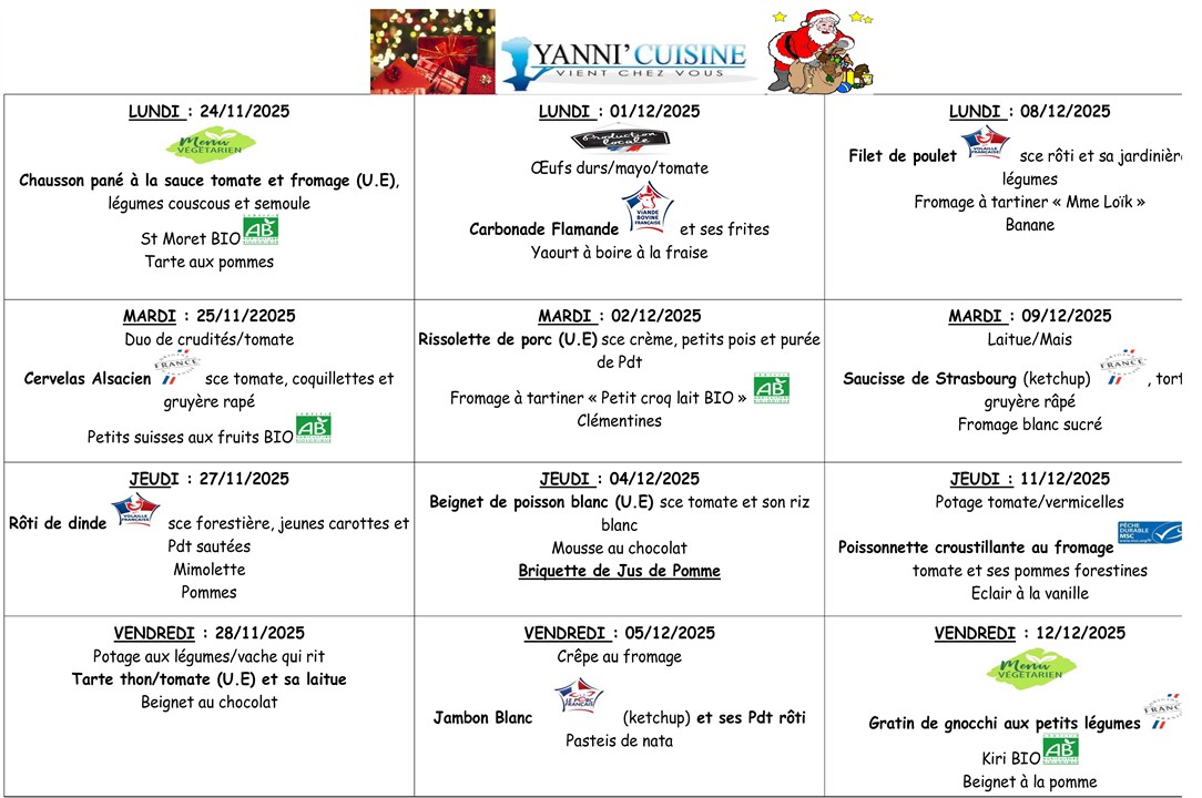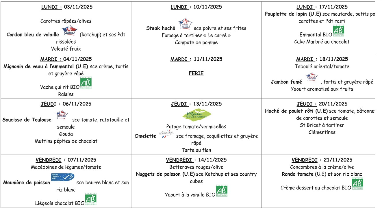 * Menus susceptibles de variations sous réserve des approvisionnements.